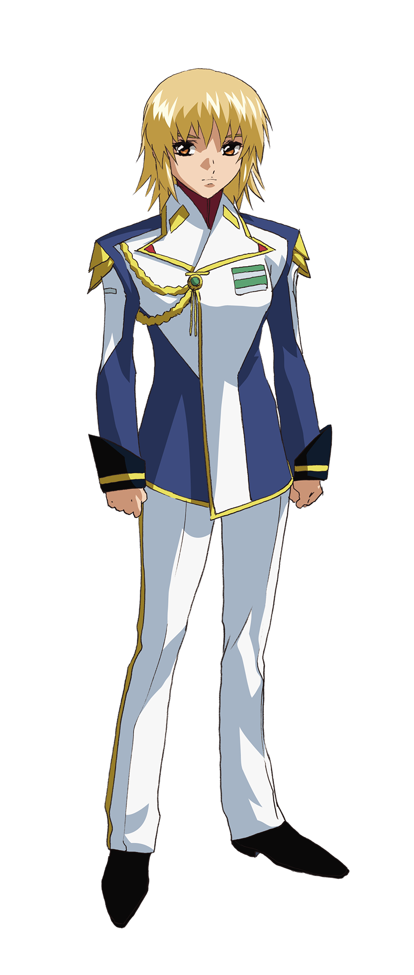 After the second battle of Jachin Due, she serves as the representative the Orb Union that has regained chief representative. Although it is said that she was politically set up to her position, she busies herself between the Earth Alliance and PLANTs so that war does not happen following her own strong feelings.